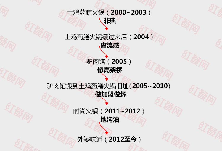 无奈之下,他终止了驴肉馆的加盟,又匆忙换成时尚火锅的加盟。不料2011年“地沟油事件”炸锅,全国火锅遭殃,他刚推出的火锅加盟计划再次夭折。