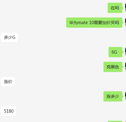 氢媒工场记者在华强北市场的调查中发现,华为Mate 10的情况则跟苹果截然不同。华为Mate 10在国内比苹果iPhone X早上市两个星期左右的时间,一家渠道商对氢媒工场记者说:按照华为Mate 10高端版本而言,原价4400元左右的机型价格上升到了5180,价格还比官网销售价格高出500元左右。