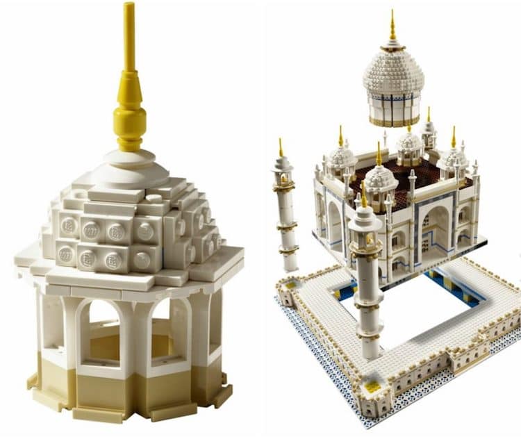 如果你不能亲自去印度看看泰姬陵,而且你恰好是乐高爱好者的话,你可能会希望试试组装乐高即将重新发售的泰姬陵套件。原版泰姬陵发布于2008年,共有5922块积木,它是当时正在生产中的片数最多的积木套件。后来,这一记录被千年隼号打破,泰姬陵也在2010年停产。