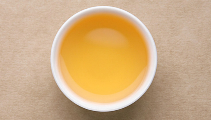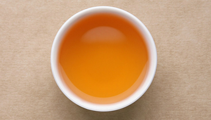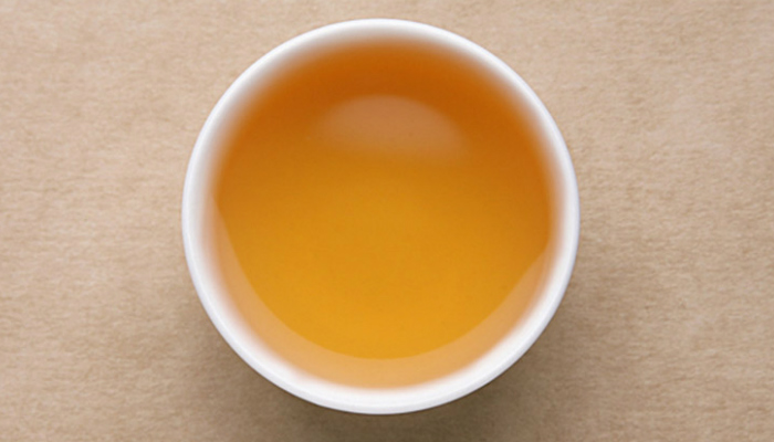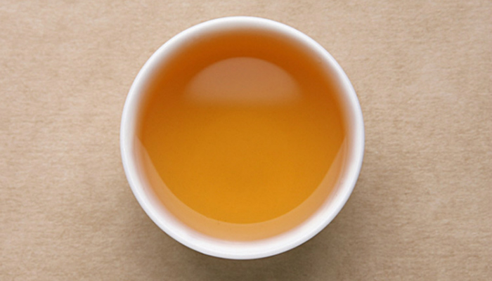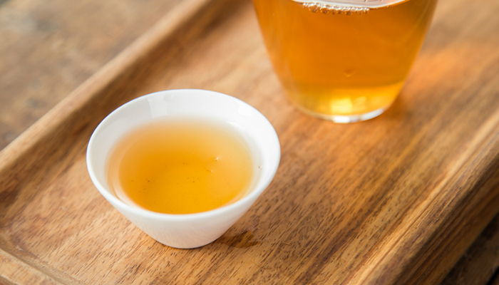汤色橙黄中微有泛红,明亮清透,植物的木质香和谷物的熟甜香明显,隐有烟香浮现,茶汤爽利,甜度高,汤感更为油润,喉底回甘强劲,似冰糖甜般甘甜。