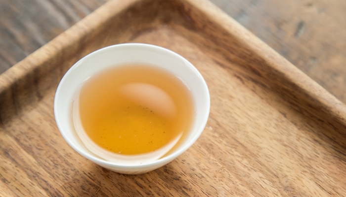 汤色黄亮,有很明显的木质烟香,入口微甜,汤感稠润,隐苦并迅速回甘,回味似谷物的甜香,带明显的清凉感,杯底香甜浓郁。