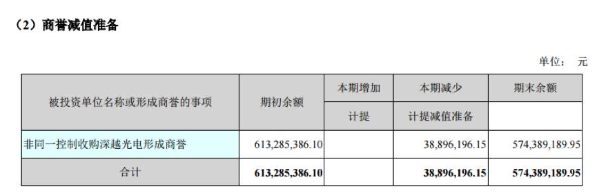 据公告显示,2016年底对深越光电的评估值为9.36亿元,较2015年的10.89亿元减少了1.53亿元,约减少了14%。这体现在财报中,则是进行了首次商誉减值,星星科技对深越光电计提了约3890万元的商誉减值准备。