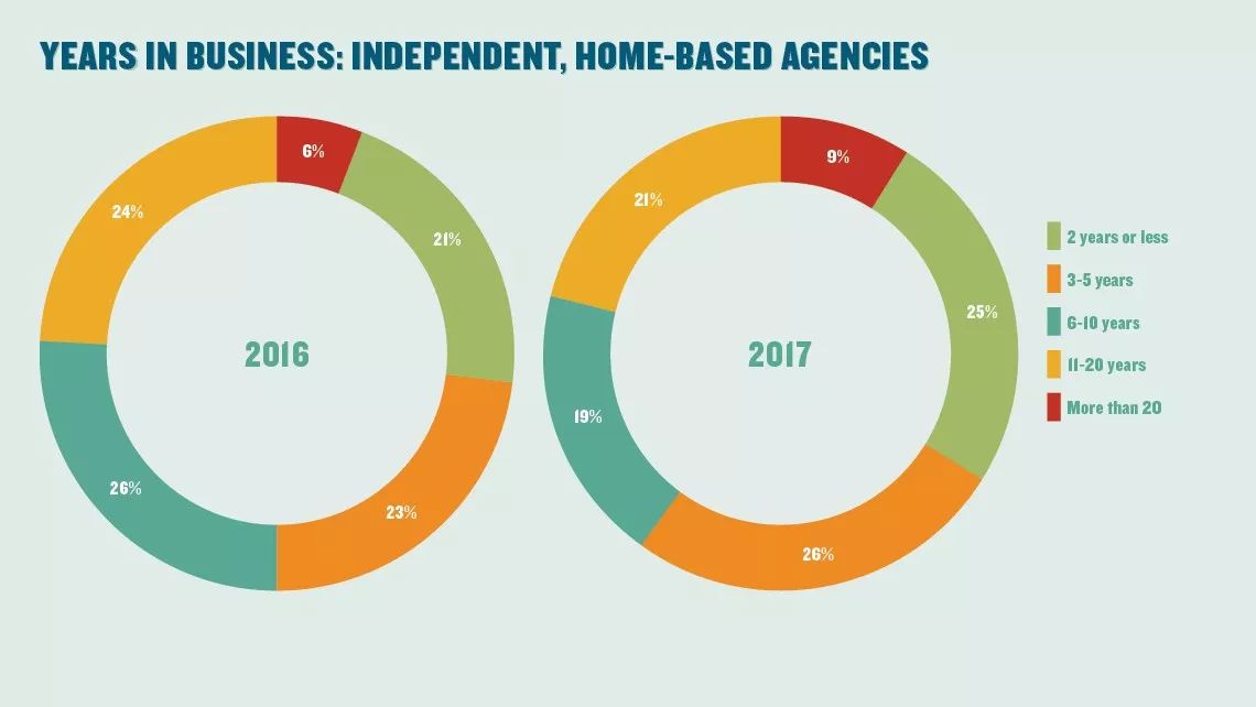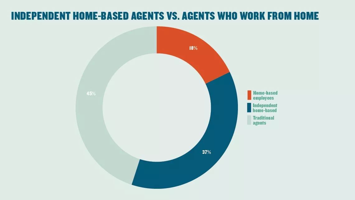 4、在今年的调查中,37%的受访者表示是在家工作的私营代理商,18%则表示是在家工作的雇员代理商。为了简便起见,没有特别说明的情况下,“在家工作的代理商”在该报告中指的是那些在家工作的私营代理商。