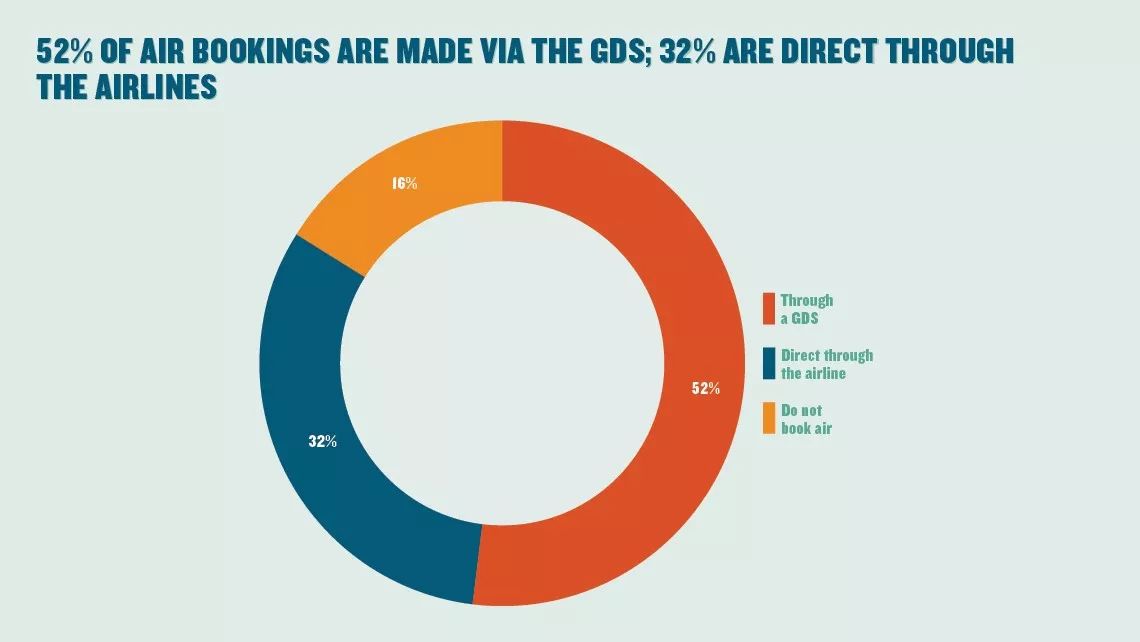 上图是代理商机票预订渠道占比图,通过GDS预订的占到52%,官网直订占到32%,不预定机票的则占16%。