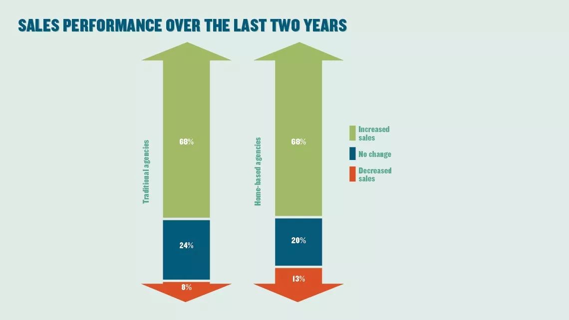 2、在过去几年时间里,根据代理商是在办公室还是在家里工作将他们分为传统代理商和在家工作的代理商。