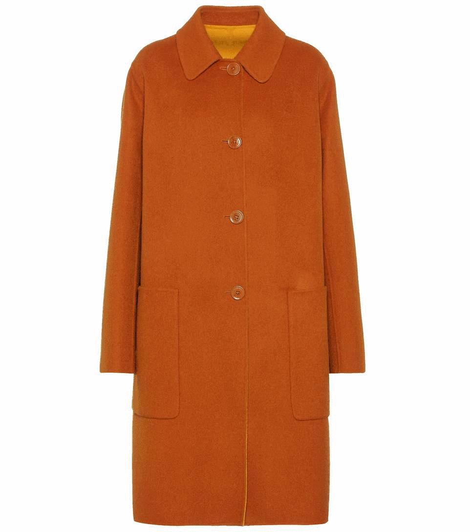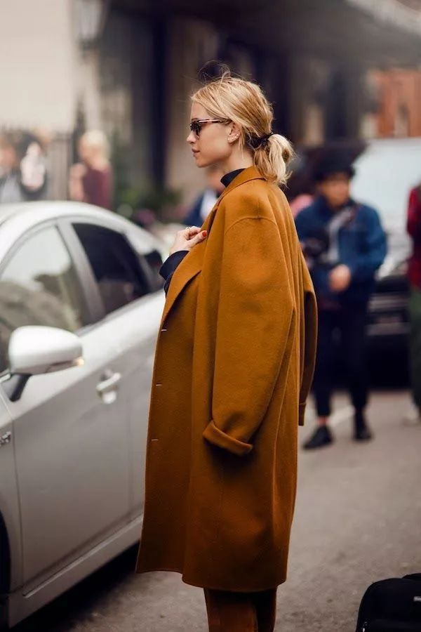南瓜色的黄很容易显老气。今年只看到一件好看的南瓜色大衣,来自BV,像我在上篇狒闻 | 几枚时尚圈鲜蛋说的,现在的设计师很贴心,喜欢一衣多穿的设计。BV这件就是,正着穿是焦糖色,反过来穿就是很正宗的南瓜色了。高级的羊绒和顺溜的廓形真的是深得我心。