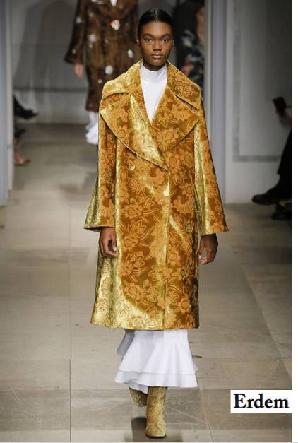 一提到秋冬大衣,大家最容易想到的是羊毛、(faux)fur、羊绒等材质。但今年不要被这些老套的材质束缚住了,因为今年设计师们整体都在反性冷淡,所以丝绒、织锦提花料、麂皮、缎等面料的大衣,于最主流的羊毛大衣外成为潮人们的新选择。