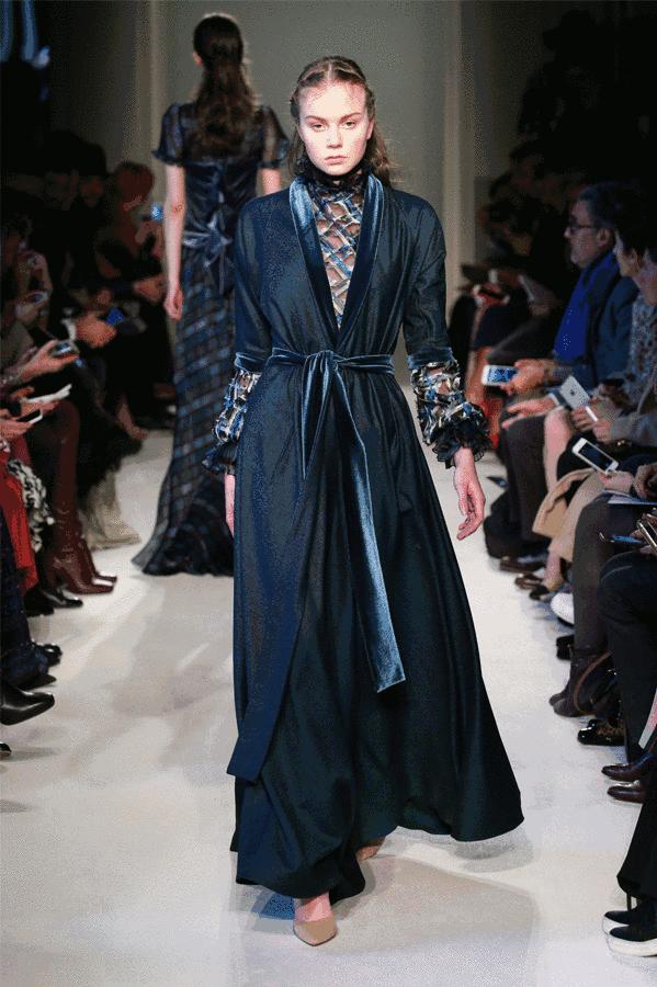 如上,Luisa Beccaria喜欢那些光泽感超强的面料,诸如丝缎、丝绒,有种华贵私密的感觉。仿佛是意大利贵族们在自己城堡里开私人晚宴时会穿的衣服。其实旧时欧洲贵族的睡衣就是丝绒质地的。
