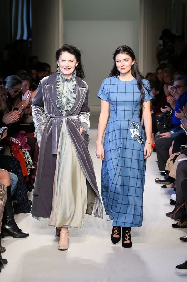 Luisa Beccaria的同名创始人,即下面左边这位优雅的女士,居然还是有皇族背景的。她嫁的是西西里的一个王子。皇族根基和从小养成的审美滋养了她的fashion design事业。现在,她跟她的女儿一起经营这个品牌。下图可以看出她本人在身体力行地表达对丝绒的喜爱啊: