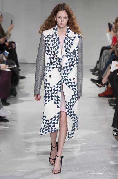 当然了,保守起见,投资一件驼色的大衣也没差啦,没有过时之说。今年的驼色大衣都长得比较雷同,最好玩的是J.W.Anderson 的拼接材质大衣,两个袖子用的是民族风钩编拼接上的。