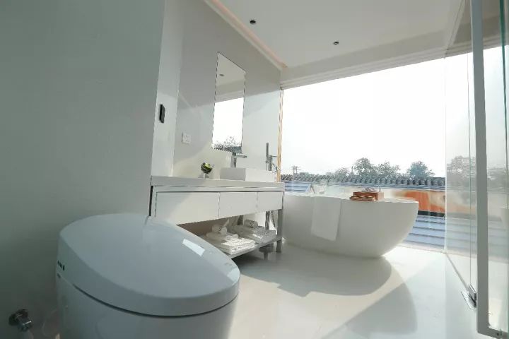 在北京走街串巷,最不愁的就是喝多水要上厕所——由于过去生活需要,胡同里最不缺的就是公共卫生间。而在四合院改造中,每个客房新增洗手间成了基础。拼硬件的年代,空调、地暖、新风系统也成了标配。在呆住·东方美人,甚至每个房间都建了泡池。所有这些,其实也在考验老城区的水电供应。