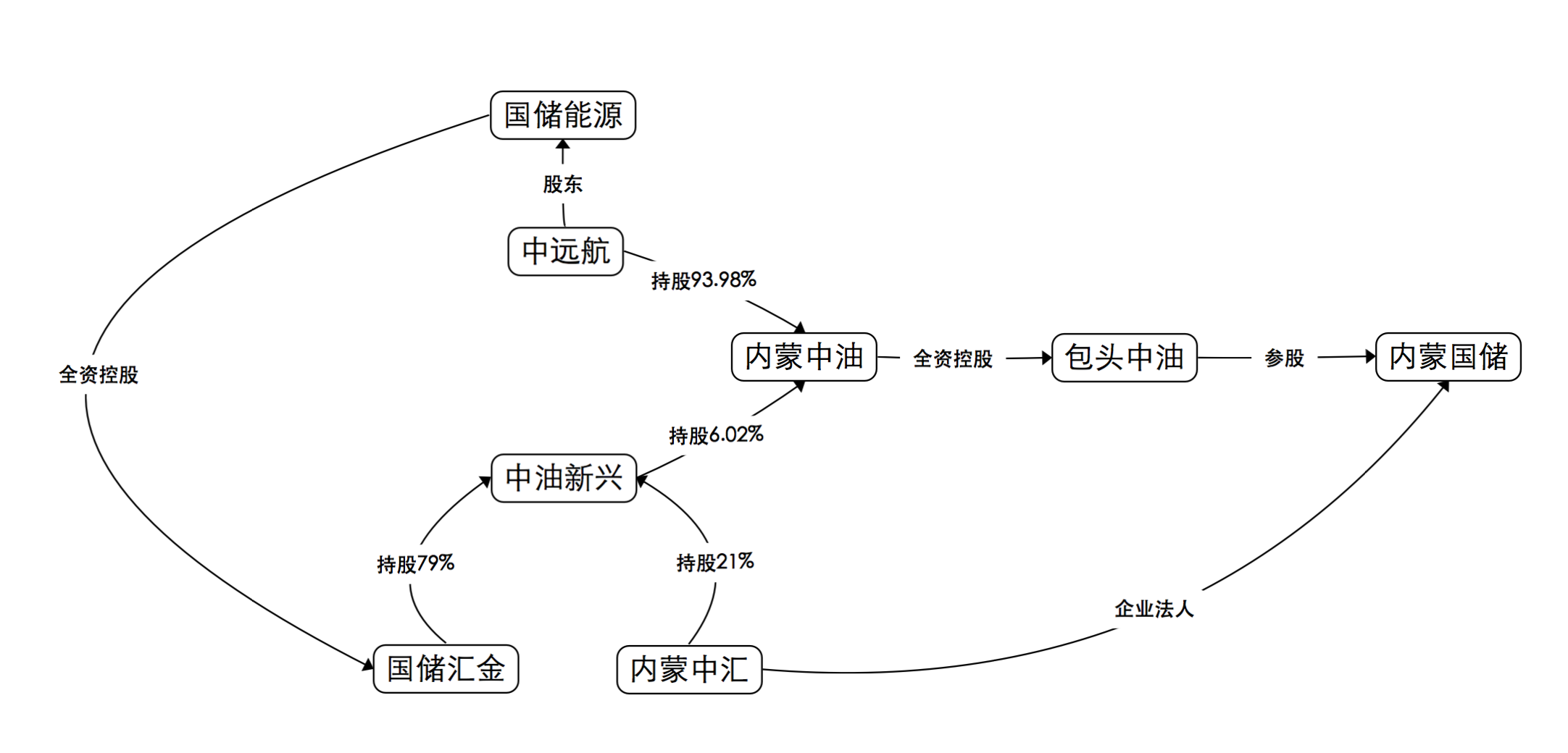 至此,中远航的股权线路已呈现出较为清晰的逻辑。如将其再进一步简化,即内蒙国储的执行事务合伙人与国储能源共同控股中油新兴;中油新兴和国储能源的股东中远航,又与内蒙国储有着千丝万缕的联系。