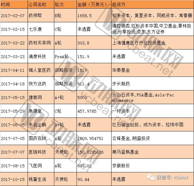 据我们统计,截至2017年Q3,医药电商领域发生融资13起,总融资金额约为1.27亿美元,仅为去年的一半(去年医药健康领域发生融资10起,总融资金额2.67亿美元)。
