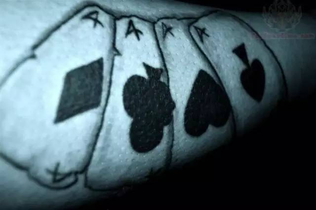 花色扑克牌纹身表明囚犯喜好赌博,这适用于在监狱中,以及在更普遍的意义上的赌博游戏:有人把生命当做赌博。在俄罗斯的监狱中,每种花色的扑克牌有它的含义。
