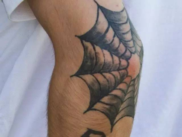 长期服刑记号,象征着犯人就如同被蜘蛛网困住的猎物一样身陷囹圄。常见于肘部,基本为黑色。如果你看到一个彩色的蛛网,他很可能只是个纹身爱好者,因为牢里很少有机会能获得彩色墨水。