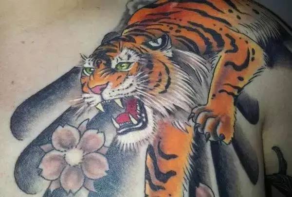 老虎纹身象征力量和强壮,任何帮派成员都有可能纹上一头,“左青龙、右白虎”,是咱们骚年都很熟悉的东方纹身图案,你可以看到很多亚洲帮的成员特别喜欢把一只霸气的老虎纹在胸前或上臂。