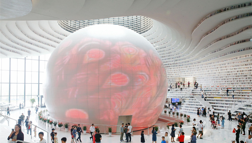 近日,日本网友@bladerunner1982发布的一条关于天津滨海图书馆的推特被转发2万余次、点赞近4万次。