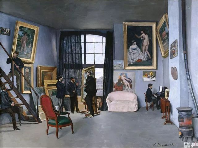 巴齐耶并没有在格莱尔画室待多久,他很快就租了自己的工作室,准备大干一场。因为家境富裕,巴齐耶既不需要考虑经济问题,也不必为了迎合市场需求而去卖他的作品,还常常资助他的一文不名的朋友们。莫奈,雷诺阿和西斯莱都蹭住过他的画室,没钱的时候,他们就互相当模特。