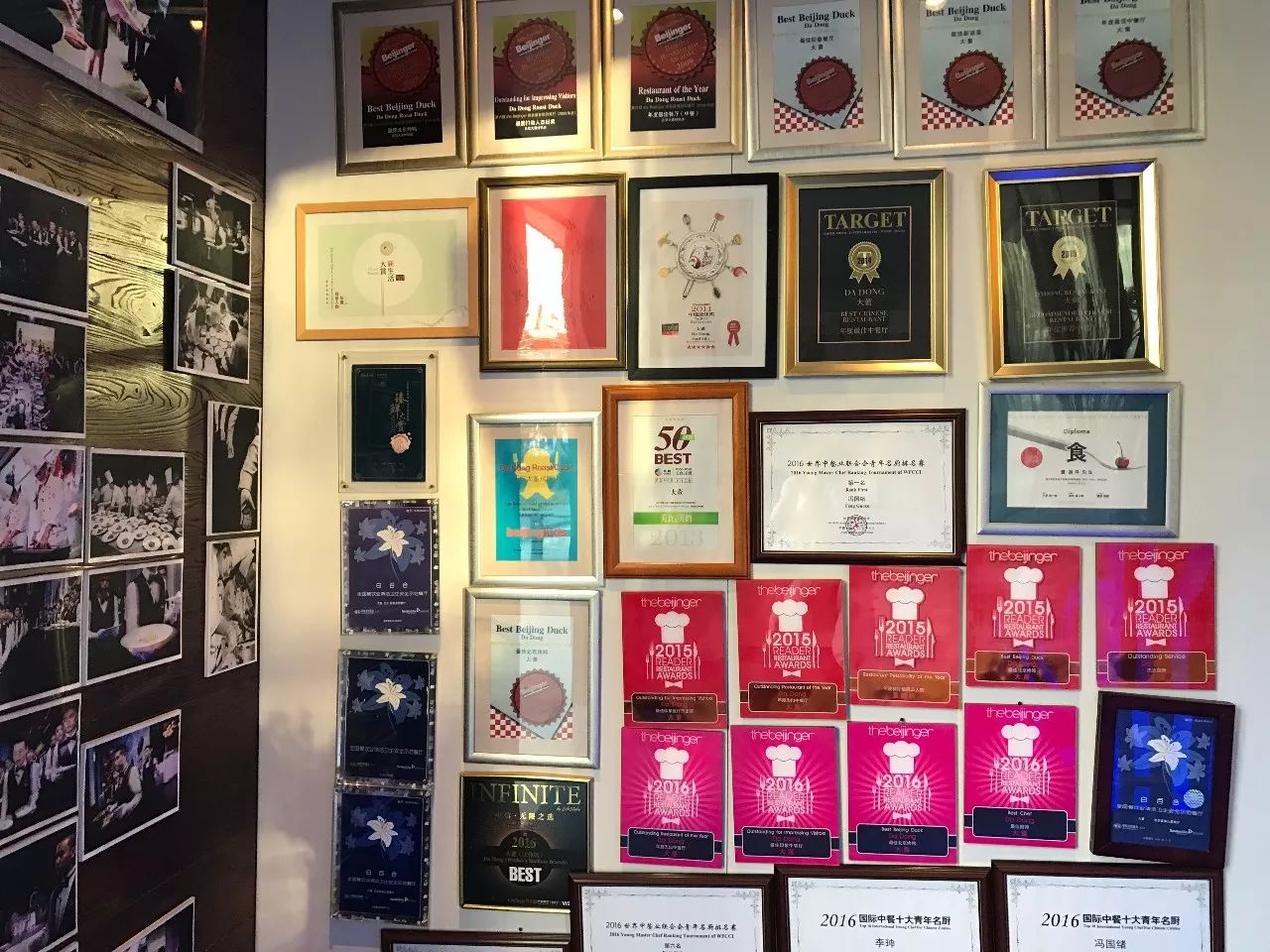 不光对外,也对内。只给顾客看未免有点可惜,它同样可以植入内部员工的大脑,就像大董门口 120 多张照片里的 4 张青年厨师奖状,这两位获奖的厨师目前有一位已经去了美国支持新店,怎么看,它都有点像我们上学时月考贴出的成绩单。