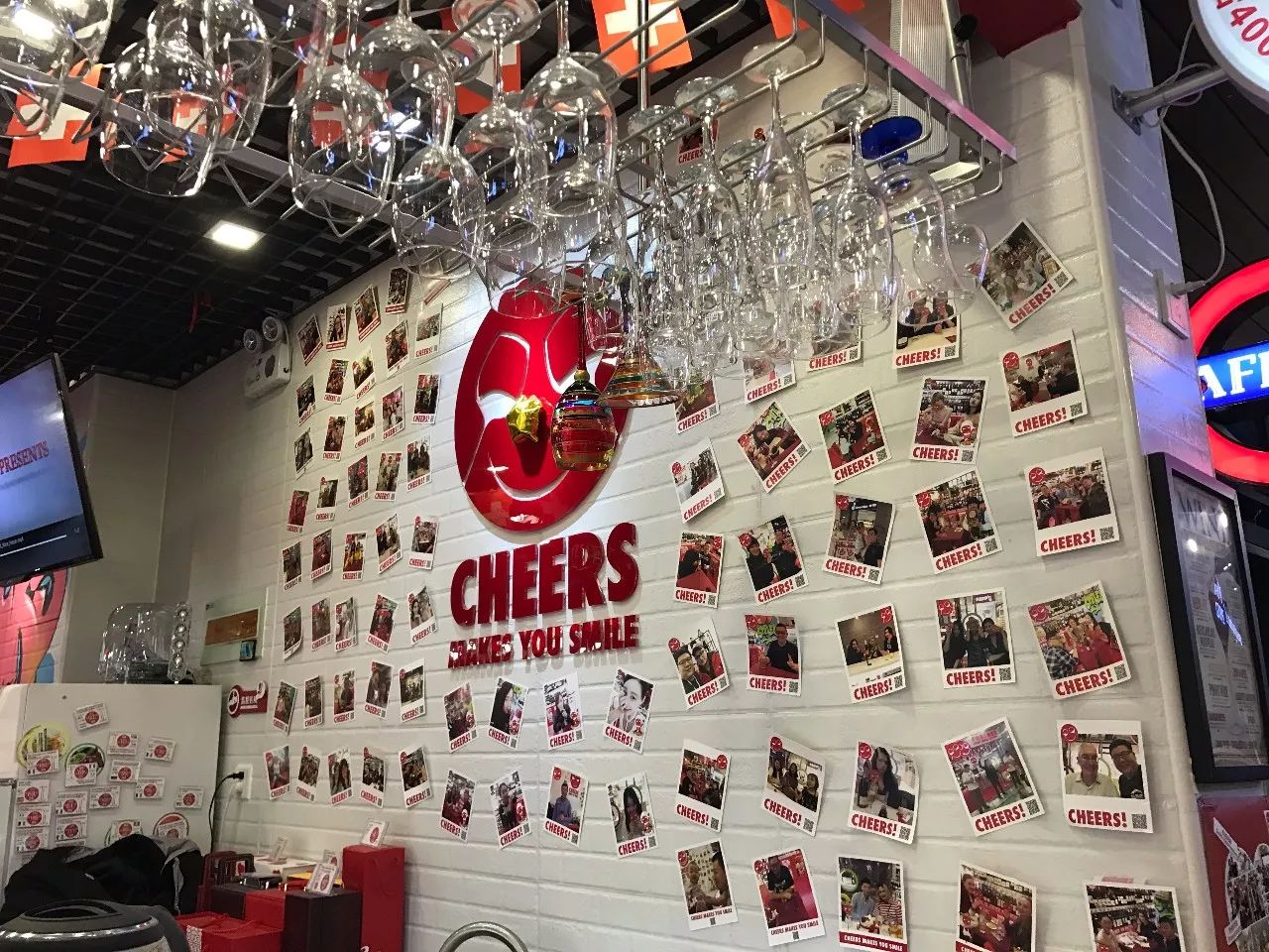 “挂粉丝”:同样用粉丝撑场子,三里屯通盈中心这家 CHEERS 葡萄酒超市选择了把粉丝欢聚一堂的照片挂墙上,虽然走的是零售路线,但免费试喝、价格合理、老板人好的特质还是让这家小店传递出了温暖,很多客人也会坐在那喝两杯聊聊天、拍拍照再走,这些照片顺道也就被老板贴了上去,它恰恰好反应了酒的情感特质。昨天逛到这儿时我就是被这堆照片吸引到的。