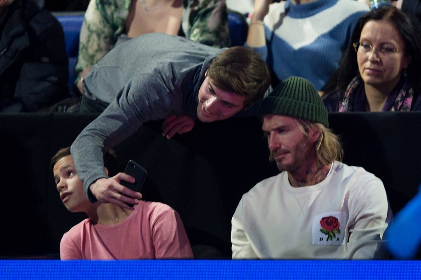 英国老牌偶像贝克汉姆也到场观看了比赛,此行他还带着自己的儿子罗密欧一共观赛。比赛期间,许多观众来找贝克汉姆自拍合影。不过,罗密欧可没有父亲这么好的待遇,他甚至还成为了合影的“支架”。