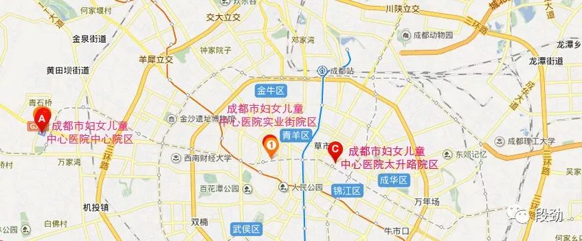 打个比方,妇产科比较优质的资源集中在成都市妇幼保健院(成都市妇女儿童中心医院),这所三级甲等医院目前有三个院区,第一个是位于青羊区日月大道的新院区(西3.5环)、第二个是位于青羊区实业街院区(一环内,近宽窄巷子)、第三个是太升路院区(一环内,近骡马市),最后一个是东城根院区,也在一环内,八宝街附近,新修的但目前还没什么人气。