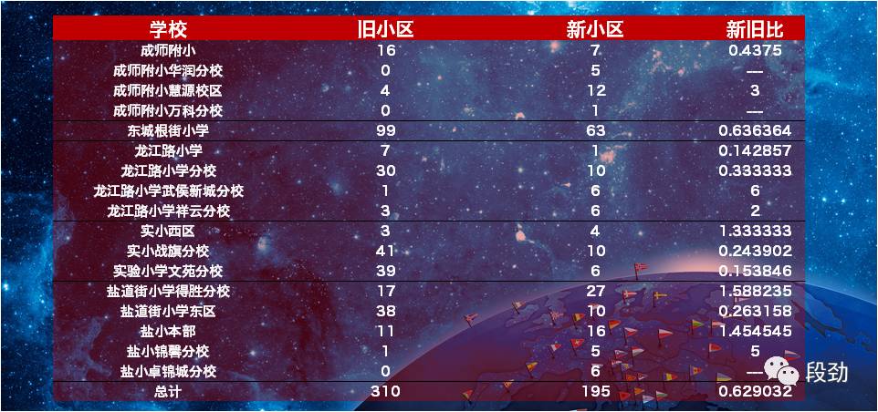 从数据上来讨论下,我筛选了成师附小、东城根街小学、龙江路小学、实验小学、盐道街小学五所的对应“学区房”来分析。