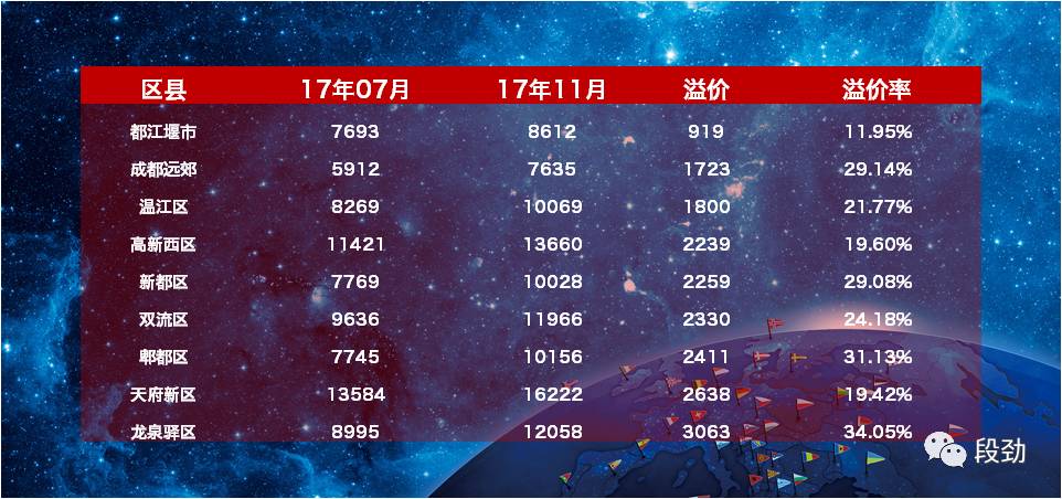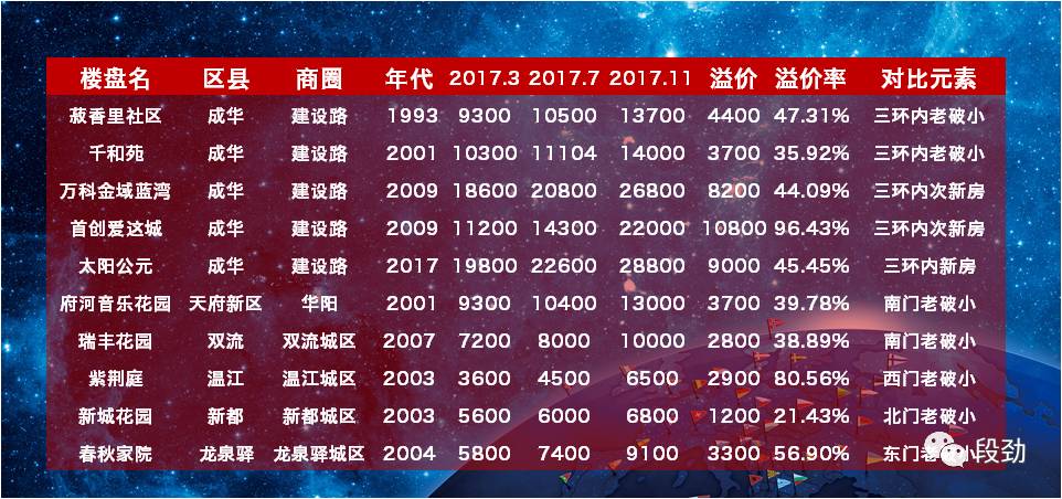 溢价未超过2003年以前三环老破小4个月溢价1922元的则仅仅为都江堰、成都远郊以及西控下的温江。
