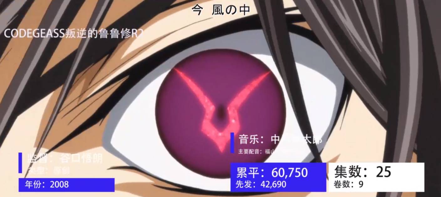 《叛逆的鲁路修》也捧红了当时的一大批声优,监督谷口悟朗和脚本大河内一楼(虽然后来大河基本处于自我放飞状态)也为人所知,音乐更是佳作层出不穷,成为一个带红了集体制作人员的现象级作品。