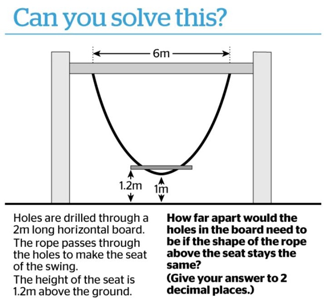 如果要保持秋千绳的形状不变,两个钻孔之间需要相隔多远?(答案需保留小数点后两位)