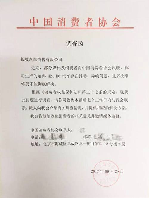 而就在今年9月,中国消费者协会甚至一度对H6、H2进行发函调查,督促其尽快解决,这在汽车业内很少见!