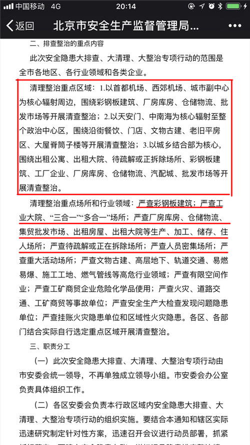 西红门的一场大火,让整个北京掀起了一场为期40天的安全隐患大排查大清理大整治专项行动,北京市围绕彩钢板建筑、厂房库房、仓储物流、批发市场、出租公寓、出租大院等重点整治区域进行了大清理。