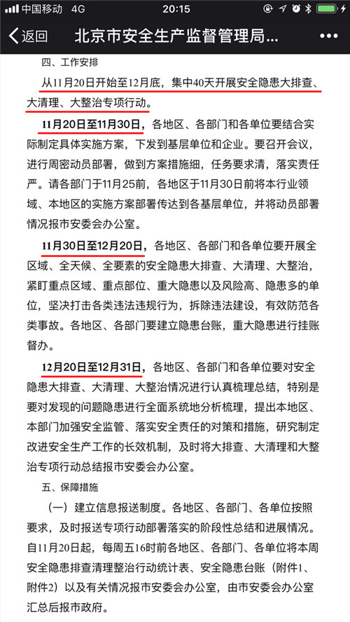 11月19日,北京召开了部署会,要求全市各区、各部门、各单位全面排查清理各类安全隐患。