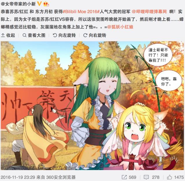 在微博、贴吧、b站等动漫爱好者较为集中的社交网络平台上,几乎所有粉丝在评价《狐妖小红娘》动画时,都会说这是一部慢热型作品,成功地改变了他们对国产动画一贯的偏见。