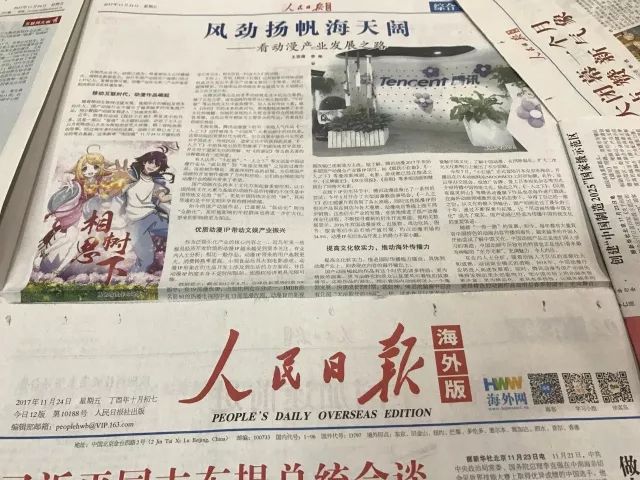 腾讯动漫在内容精品化方面的坚持,最终也获得了主流媒体的认可。11月24日,《人民日报》海外版刊登了一篇名为《风劲扬帆海天阔——看动漫产业发展之路》的文章,其中就大力表扬了以《狐妖小红娘》为代表的中国动漫IP,为带动文娱产业振兴,提高我国文化软实力所发挥的重要作用。