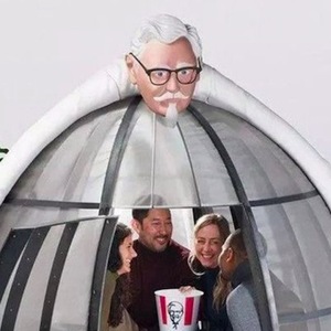 黑五过后,美国人民迎来了线上购物节“网络星期一”,为了让你远离买买买,肯德基做了一款帐篷。帐篷由钢材和不锈钢网制成,顶上趴着一个桑德斯上校,帐篷门把手则是炸鸡造型。帐篷尺寸为7’x7’x6’6”(2.13x2.13x1.98m) 。重点是,帐篷内屏蔽网络信号,里面的人可以远离剁手。