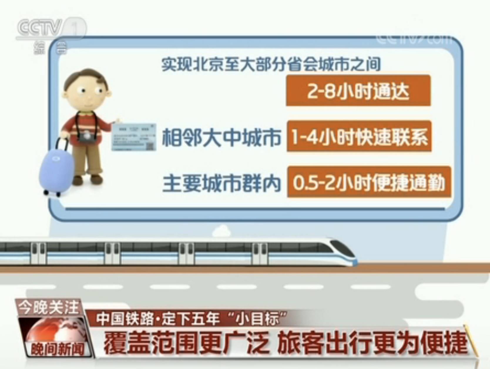 动车组列车承担旅客运量比重达到65%。实现北京至大部分省会城市之间2-8小时通达,相邻大中城市1-4小时快速联系,主要城市群内0.5-2小时便捷通勤。