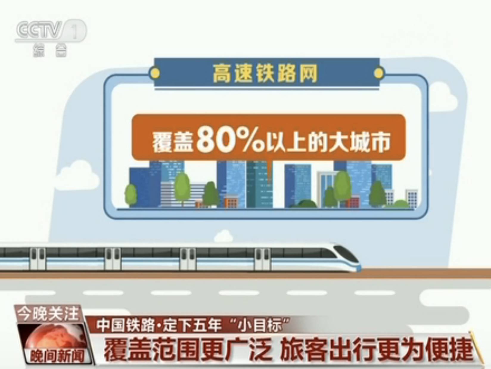 第二个小目标是进一步提升运输服务。全国铁路网基本覆盖城区常住人口20万以上城市,高速铁路网覆盖80%以上的大城市。
