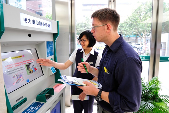 这个背影也深深刺痛了营业厅经理吴志炜的心。如何在国际化背景下提供专业服务?不久,在大家的群策群力下,多语种服务新举措应运而生。浦东供电公司选拔了一批有语言特长的员工组成服务队,一旦有外籍客户走进营业厅,相应语种的服务队成员即可提供一对一全程服务。