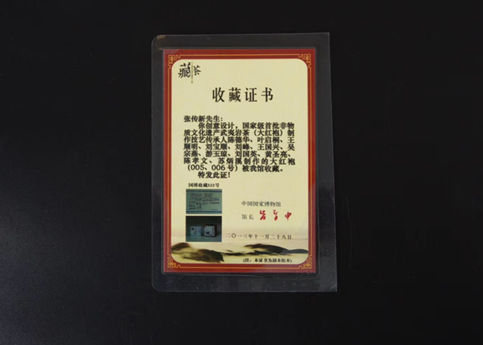 同年12月9日,“国家级首批非物质文化遗产武夷岩茶(大红袍)制作技艺传承人代表作”藏品,正式被中国国家博物馆收藏。