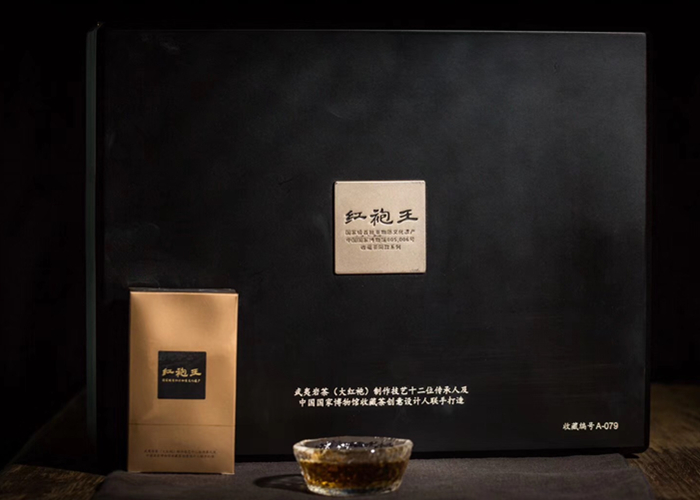 “红袍王”内含13款大红袍,其中的12款为首批国家级非遗传承人手作,1款为张传新先生作为创意设计人的大红袍纪念茶,款款皆为当年入藏国家博物馆同等正岩山场原材及同等标准工艺制作。