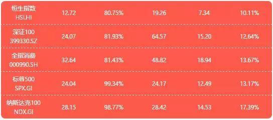 其中的百分比就表明了当前PE值(市盈率)在历史区间所处的位置。