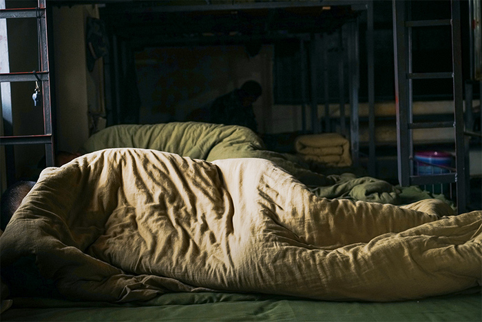 9. 两位戒毒人员在宿舍休息。康复中心的日常活动严格遵循时间表,每天下午给戒毒人员留出午休时间。