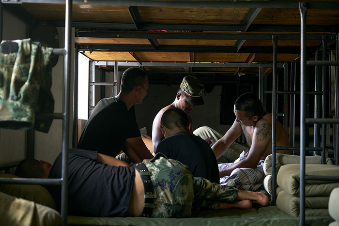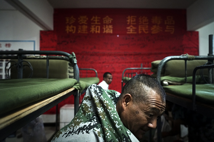 14. 一位戒毒人员趴在床上休息。康复中心的工作重点之一是针对未成年人的预防教育。他将沾染毒品的经历称为一场噩梦。如今,噩梦已经结束,但他所期待的理想生活尚未到来。