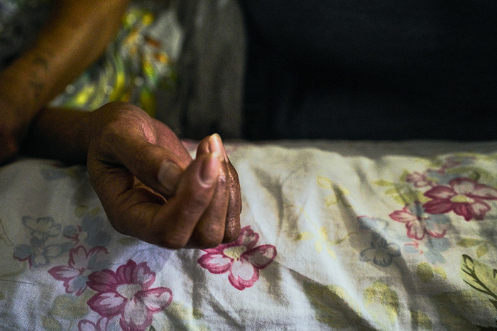 10. 在艾滋病宿舍区,一位女性病人在床上休息。5年前,她在注射毒品时不幸感染病毒,目前她的病情稳定,但身体仍然虚弱:四肢乏力、对寒冷极度敏感。她在康复中心接受免费治疗时认识了现在的丈夫——和她一样是艾滋病感染者。