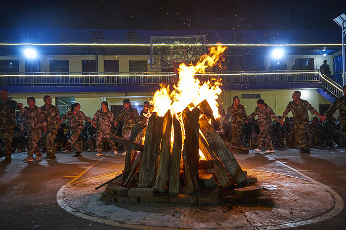 19. 数十位戒毒人员手拉手把篝火围在中间,他们边唱边跳。这种歌舞形式是当地少数民族重要喜庆日子才会有的一种表演形式,以男女对唱为表现形式。