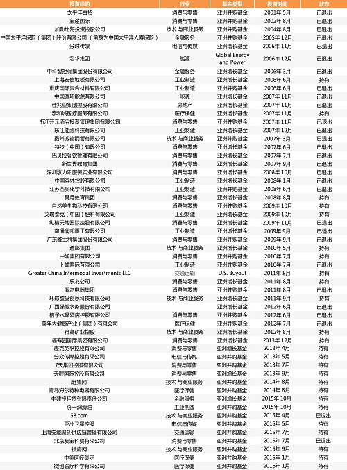 凯雷在华投资详细列表