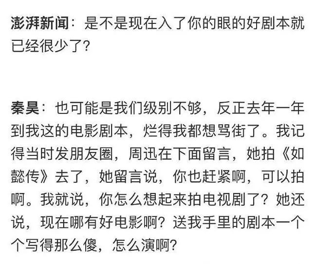 然而有实力的女演员们,鲜少能有好角色去发挥。久而久之,剧情、格局、内涵三低的本子看多了,还不如不演。