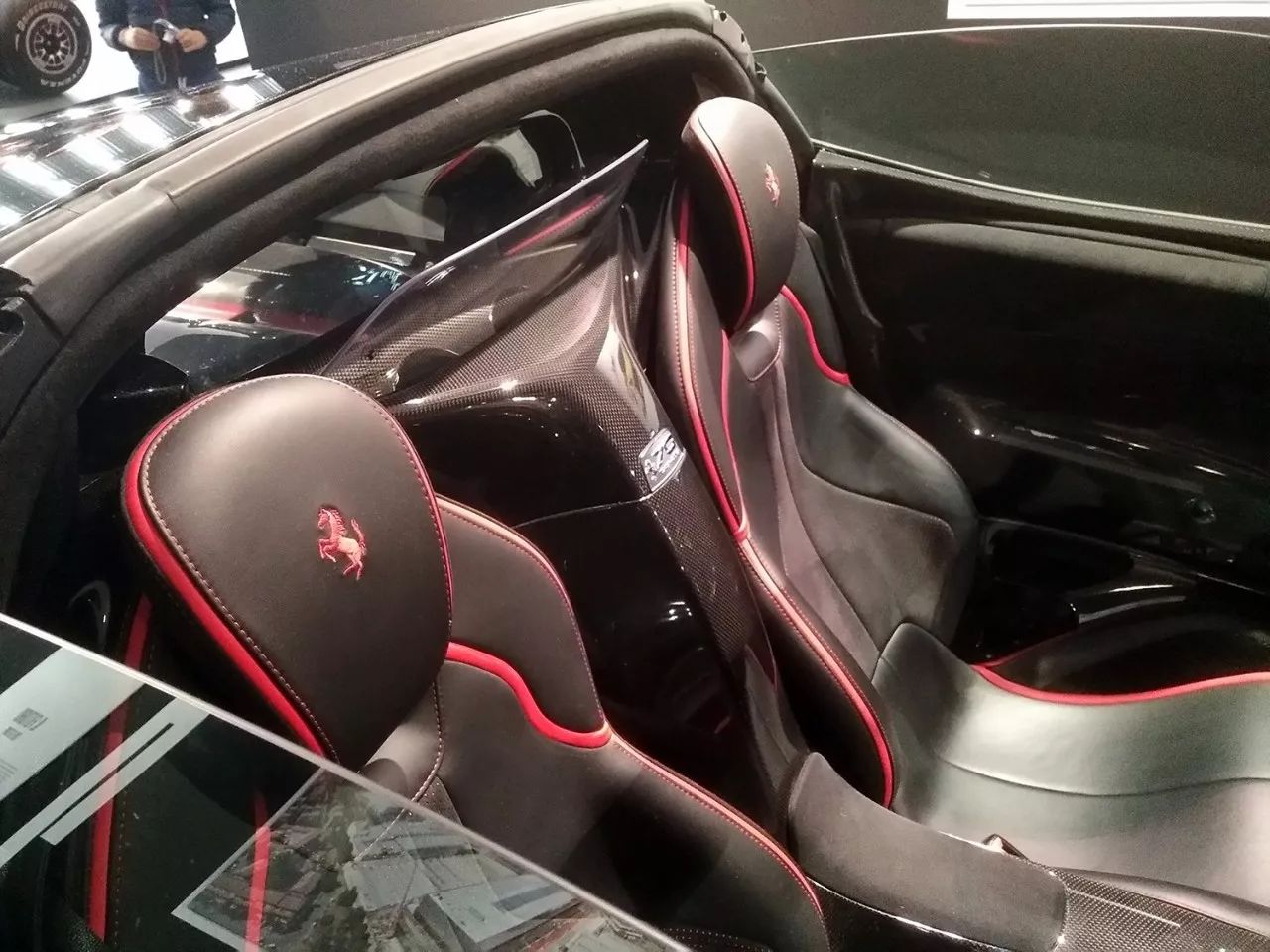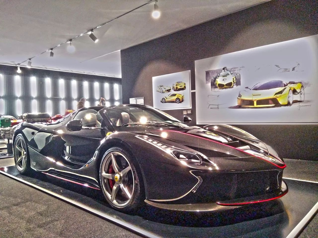 由于网上关于法拉利博物馆攻略的报导实在太多,所以小编只针对此行遇到比较特别的主题来说说──今年是法拉利推出自有品牌车的第70周年,为了庆祝,法拉利在2楼展出一台黑色特别版Laferrari Aperta,车侧贴有70周年铭牌,车身与座椅勾以红色线条,看起来挺有神秘美感。