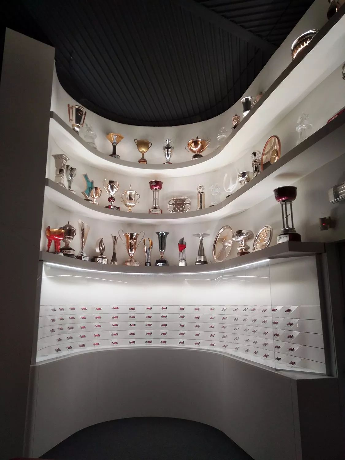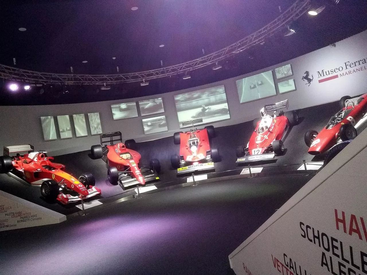 不同于恩佐·法拉利博物馆主展发动机,这里展出的展品主要以历代车型、赛车、赛事战绩为主。就赛车方面来看,小编个人觉得展览氛围铺陈得很不错,站在那个半环形历代F1赛车展台前驻足观赏影片,会有一种与法拉利同感骄傲的激动心情,甚至会想要买下一辆法拉利。但很现实的是,我的钱包告诉我要理性!